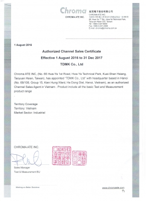 We are happy to inform that We already became authorized distributor of Chroma from 1st August 2016 and will be responsible for selling and after sales service for Chroma in Vietnam territory.